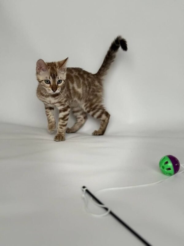 Playful Spirits: Revel in their spirited playfulness; Bengal kittens love interactive games, climbing, and engaging activities.